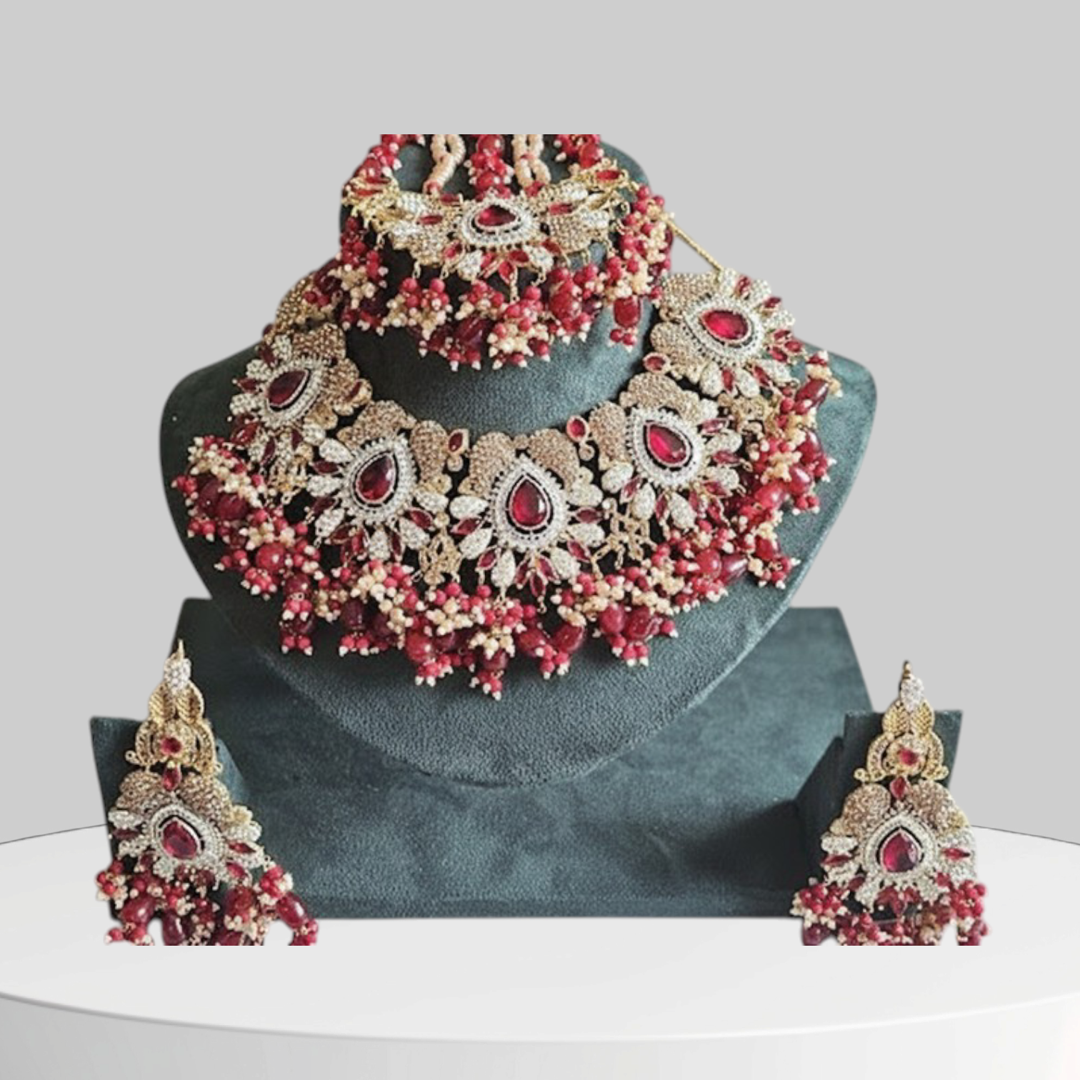 Stones: Synthetic Rubies, Kundan, Crystals, Pearls